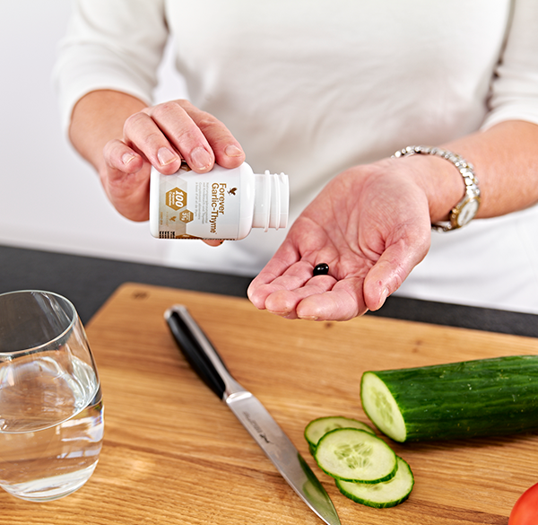 Garlic and thyme are powerful ingredients with properties that are said to promote good health; in fact, these herbs can be traced back thousands of years for their dietary uses. For full benefit, take one of these odourless softgels with each meal.